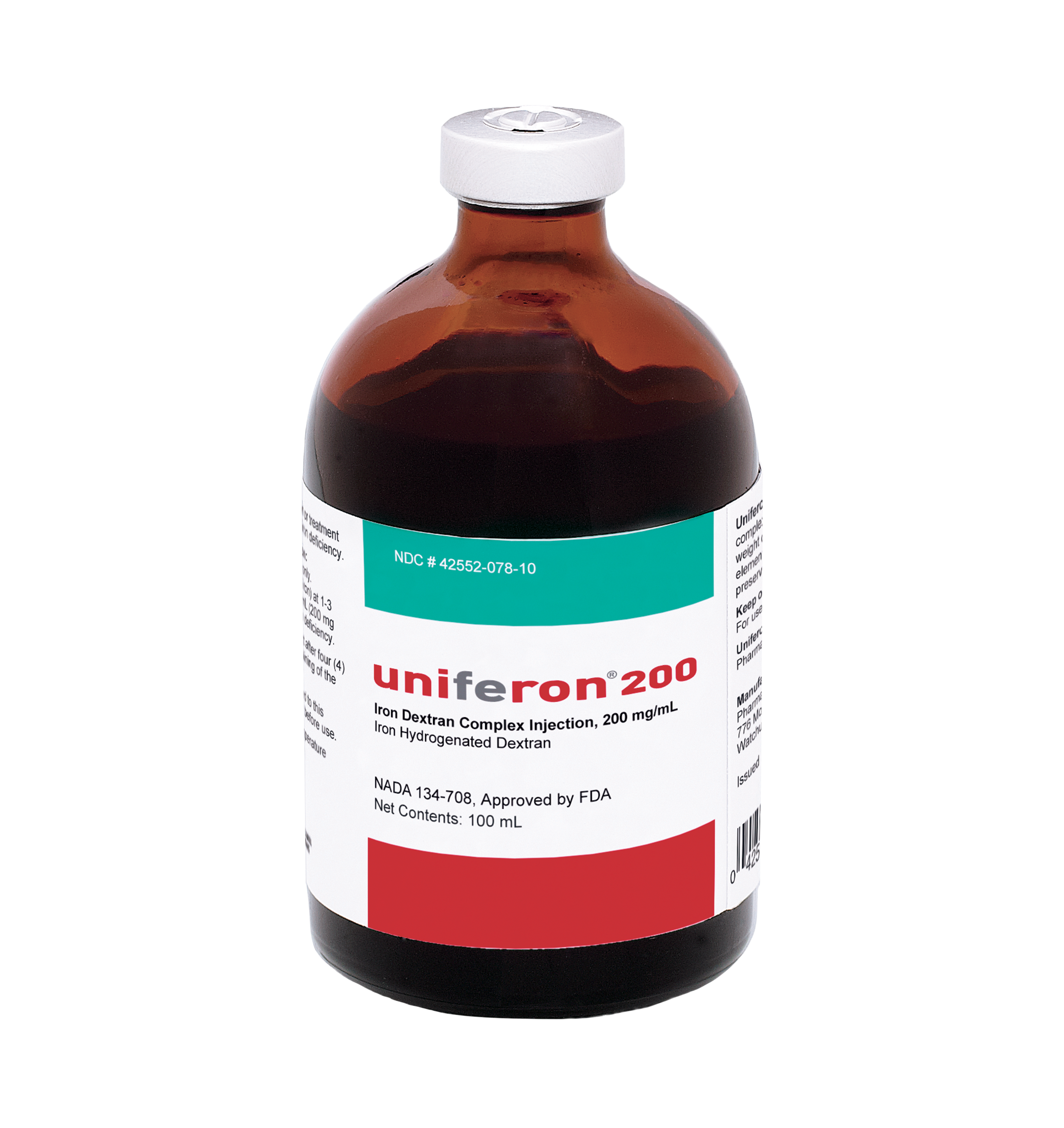 Uniferon 200 is an injectable iron supplement manufactured in the same plant and on the same production line as FDA-approved human iron (lll) dextran product to meet the highest quality standards: